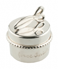 Cute First Curl box in Silver plate with a pair of scissors on the top make this a stunning little gift for new baby or as a Christening/Baptism/Naming Day