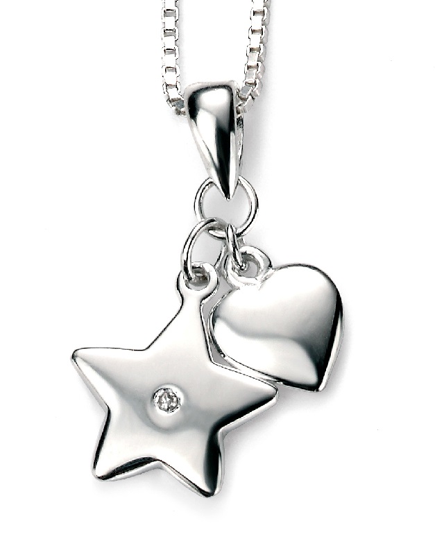 Solid Silver Star with a diamond in the centre and a heart charm on a chain