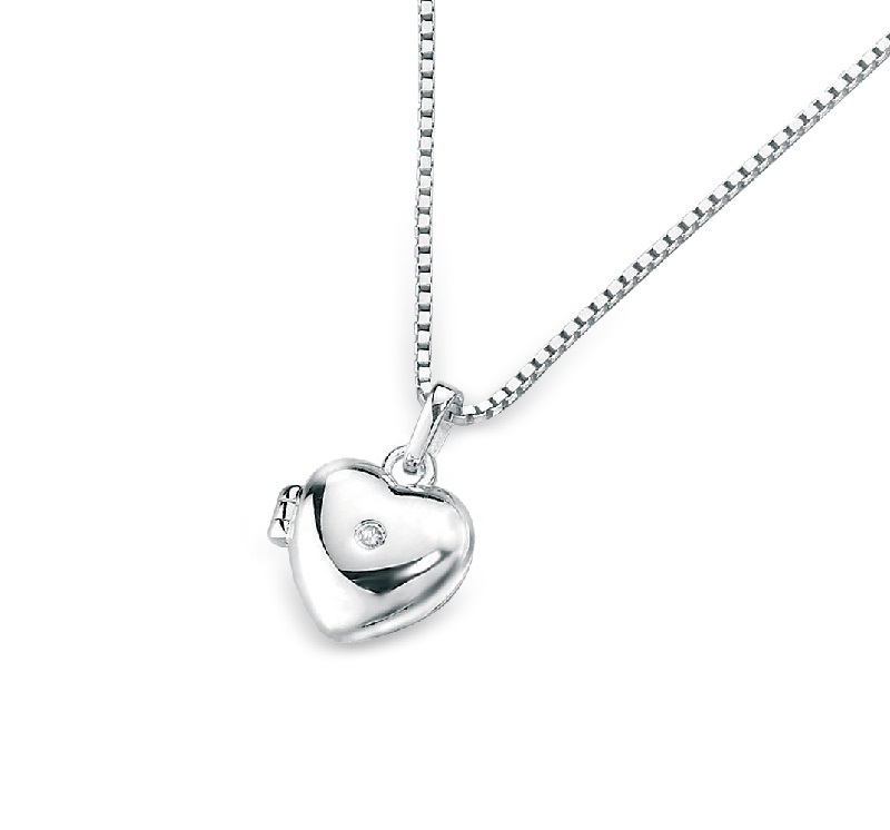 Solid Silver little locket with a real diamond in the centre on a 14 inch silver chain