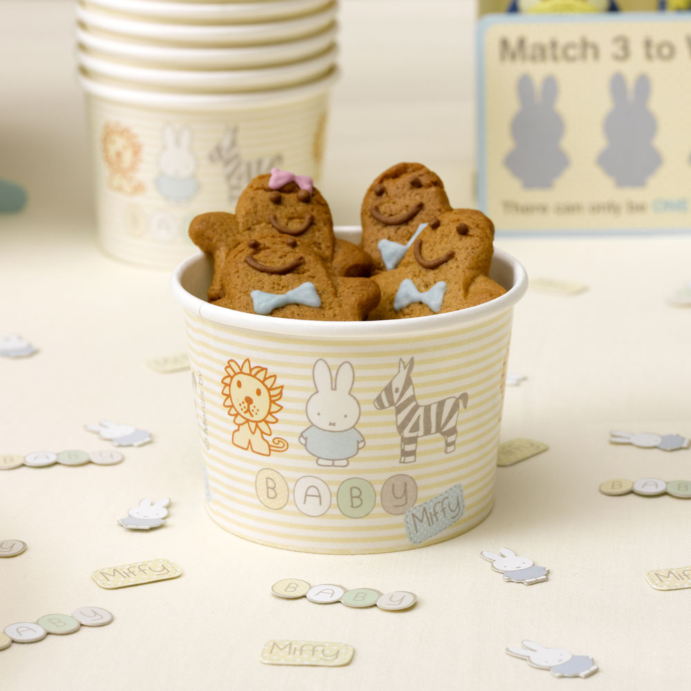 Dick Bruna’s famous Miffy creation adorns these lovely treat tubs, ideal for serving up a range of hot, cold, sweet and savoury party bites. Miffy is accompanied by a selection of animal friends against a delicate yellow striped background.