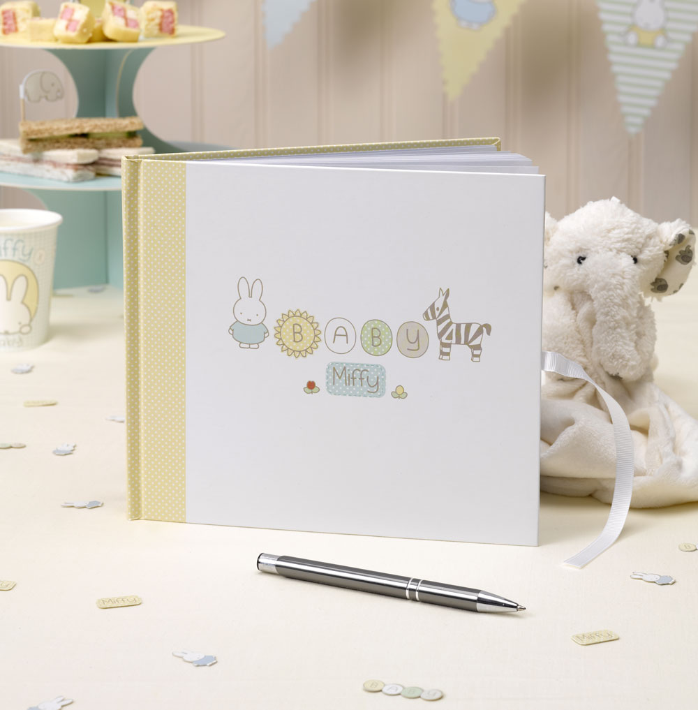 A beautiful guest book, part of the ‘Baby Miffy’ collection of table ware and party accessories. Based on the world-famous Miffy character created by Dick Bruna, this fully-licenced range includes a comprehensive selection of party products, perfect for baby showers, christenings and first birthday parties.