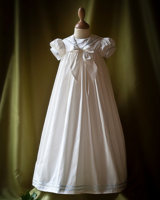 Raphael Boys Silk Christening Gown, Fully lined in satin with Guipure braid detail on collar, cuffs and front insert, silk tie on front bodice. Price depends on size.