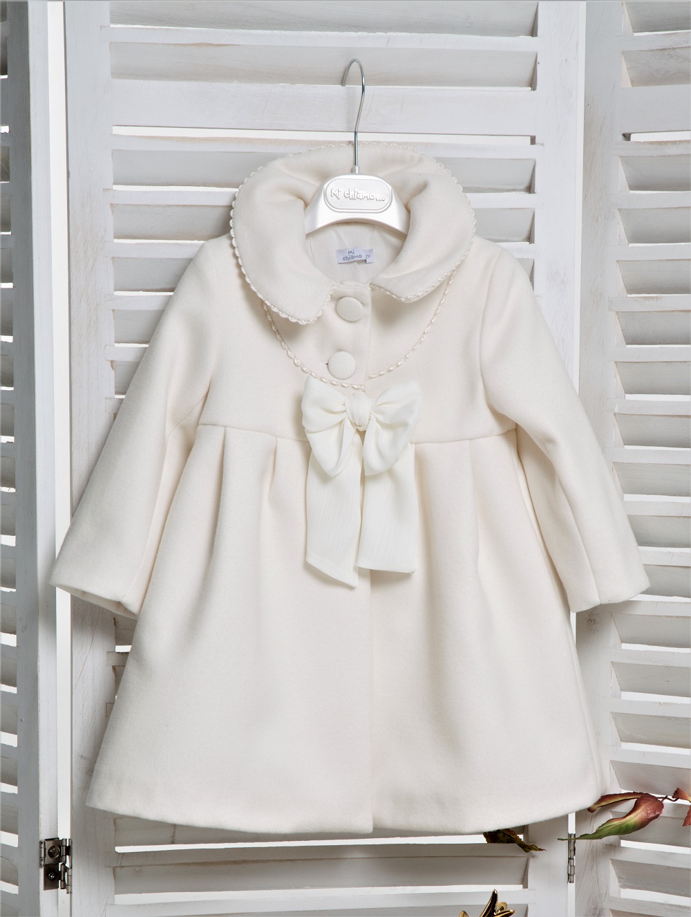 Beautiful Christening Coat for those Winter Christenings with bow detail at the wait and oversized buttons