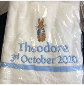 Embroidered and personalised Mirobani (Lathobano) to match the babies theme